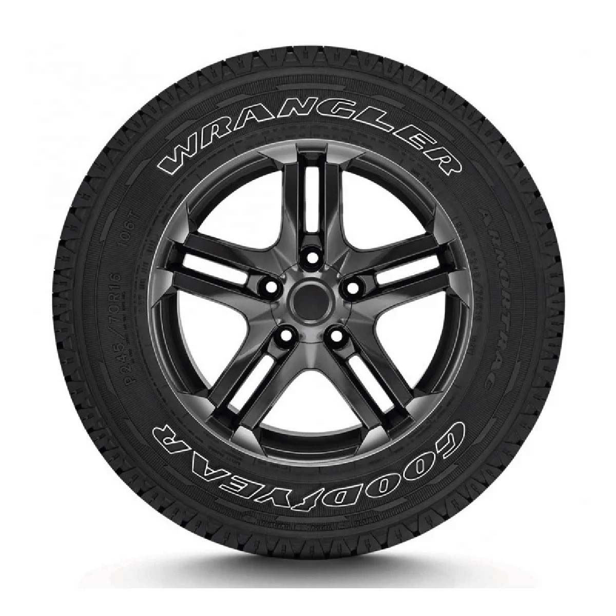 Con la Wrangler Armortrac de Goodyear, encontrará un equilibrio perfecto entre rudeza y confort que le brindará un extraordinario desempeño. Características y Beneficios: Tracción dentro y fuera de carretera. Amplios canales en el piso del neumático que proporciona el mejor rendimiento en cualquier camino. Bloques de piso profundos que ayudan a evacuar el agua, para mantener estabilidad en el vehículo. Tracción en piso mojado y seco. Tracción Off-Road. Un neumático diseñado para utilizarlo 50% dentro y 50% fuera de carretera.